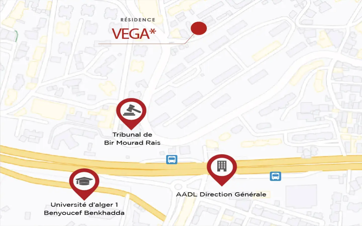 La Résidence Vega établie dans le prestigieux quartier de Saïd Hamdine, bénéficie d’un emplacement stratégique, assurant un accès privilégié aux commodités urbaines.